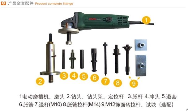 | 7 | 混凝土拉拔配件1套 | 8 | 电动磨槽机1个 |