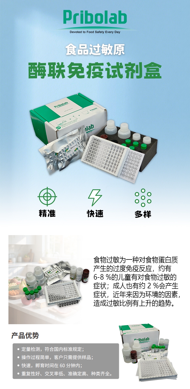 l 产品优势:高灵敏度与特异性;广泛适用性;快速高效;操作简便;抗干扰能力强;稳定性好;符合国际法规。