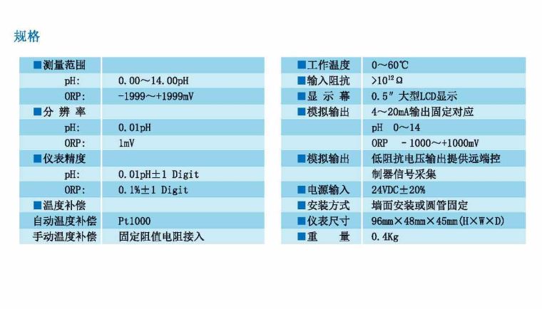 ■ 96×48标准设计酸碱度/氧化还原传讯器