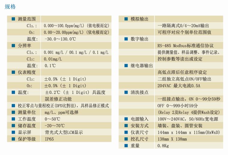 ■ 144×144 智能型余氯臭氧变送器