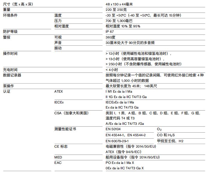 德尔格X-AM2500 多气体检测仪 产品参数: