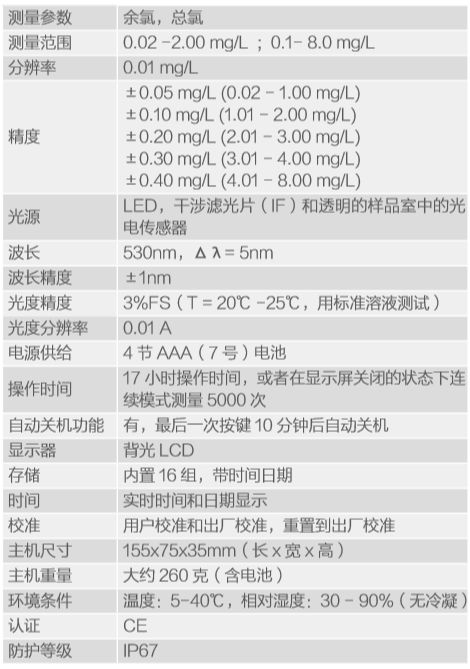 ORION奥立龙AQ3170余氯/总氯测量仪产品技术参数: