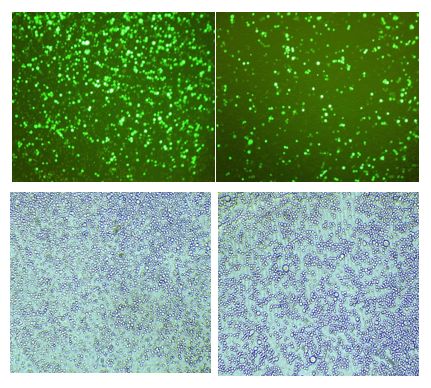 HEK293F细胞在Wayne293 TM及其他商品化培养基中转染后24小时的显微图像