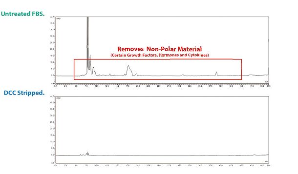 碳吸附胎牛血清通过活性炭无分子量选择性地去除了胎牛血清中的病毒、某些生长因子、激素和细胞因子等亲脂(脂质)非极性物质,但对盐、葡萄糖、氨基酸等组分影响不大。它为阐明激素在各种体外系统中的作用提供了一种成分更明确的培养材料。可用于包括类固醇受体结合,细胞受体的类固醇调节,各种组织的激素分泌和甲状腺激素的功能等研究。QuaCell®碳吸附胎牛血清以特级胎牛血清(QuaCell Cat.# B21001)为原料,通过活性炭及右旋糖酐吸附去除激素成分制成。