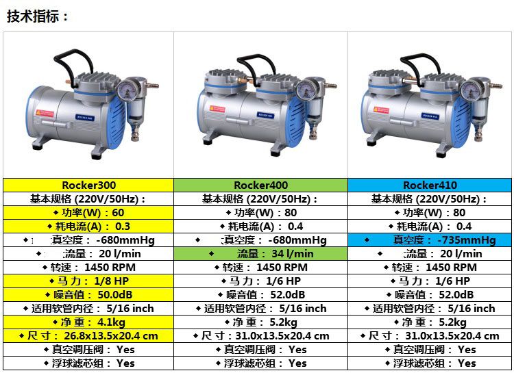 台湾洛科Rocker300无油真空泵全新改版啦!改版后的机器更加美观,散热性能更加好,连续运转时间更长,真空度更高以下是产品的详细介绍: