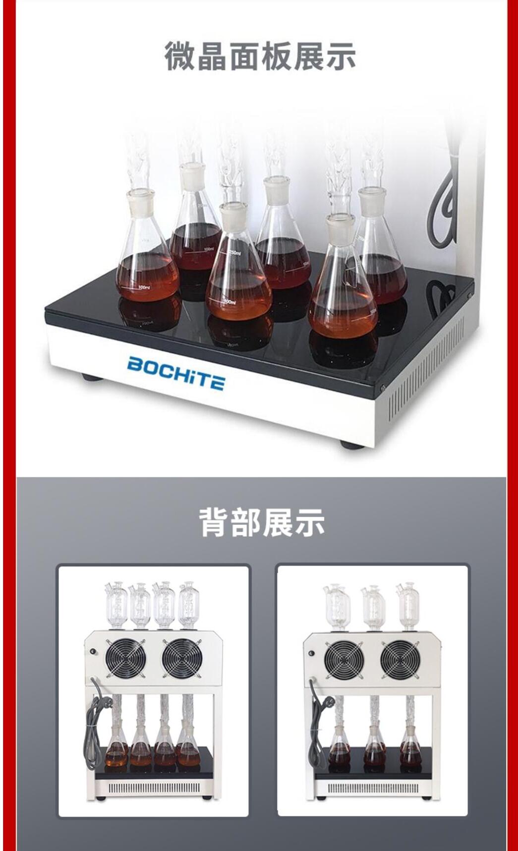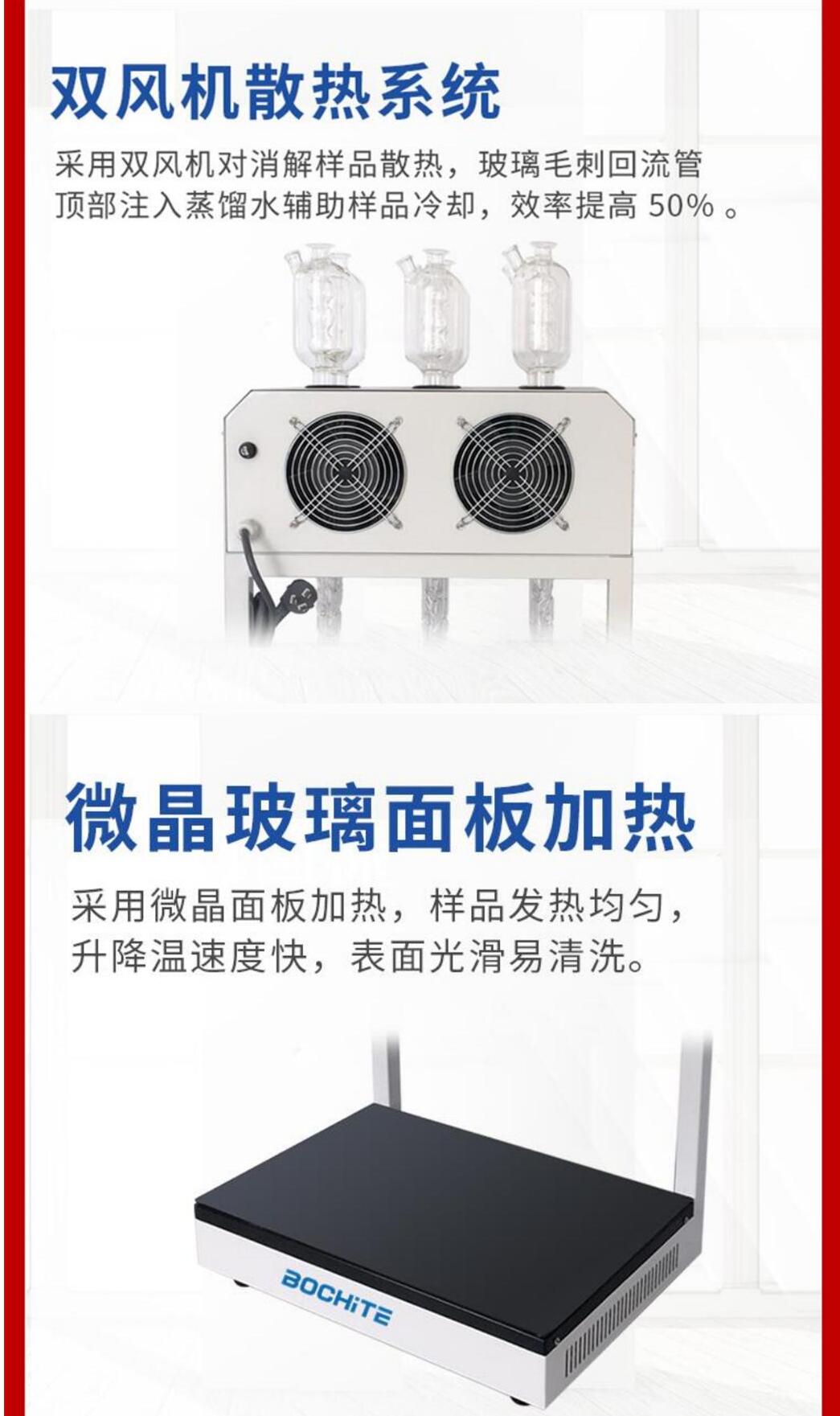 •玻璃毛刺回流管和散热系统,具有良好的消解回流效果来确保消解结果的平行性和准确性。