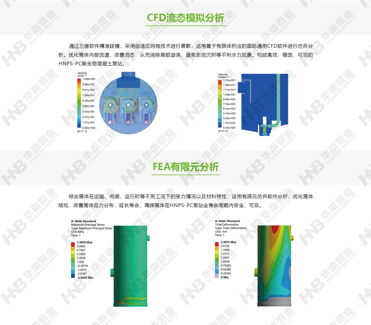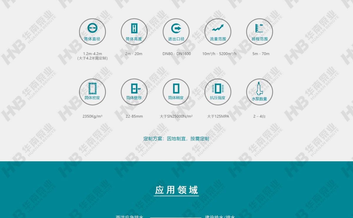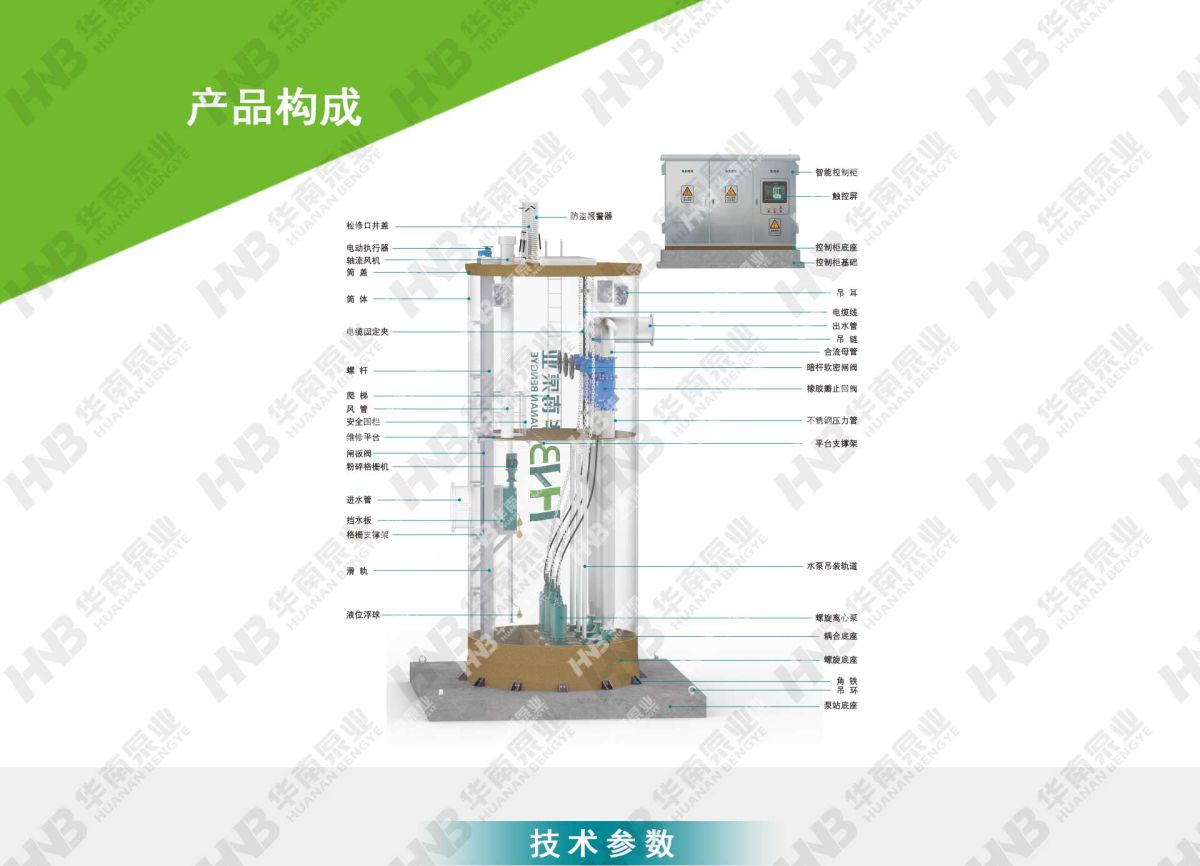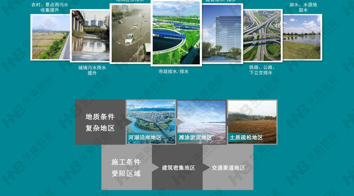 聚合物混凝土泵站多个核心结构部件由安全可靠、绿色环保的聚合物混凝土构成,通过固化体系定向回收技术,解决泵站大型结构部件回收再利用的难题。泵站采用自主研发的自清洁螺旋装置底座,能够实现无额外动力自动清洁作用。泵站的潜水螺旋离心泵采用永磁同步电机,具有效率高、体积小、功率因数高等多个优点;并采取定制化的精细设计,确保永磁体不退磁;再搭配高性能控制器,系统效率高。泵站具备CED流态模拟分析和FEA有限元分析,优化筒体内部流道,改善流态,改善筒体应力分布,确保筒体在泵站全寿命周期内安全、可靠地运行,广泛应用于河湖沿岸地区、滩涂淤泥地区、土质疏松地区、交通要道地区、建筑密集地区等场景。