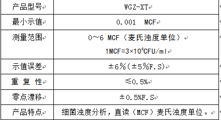 WGZ-XT细菌浊度仪主要用于测定待鉴菌株悬液中细菌浓度。本仪器采用(BaSO4)麦氏浊度标准溶液进行标定,采用MCF(McFarland)麦氏浊度单位。直接显示麦氏单位浊度值。适用于医疗卫生单位、生物制品、检疫机构及科研机构的细菌菌液浓度测定。