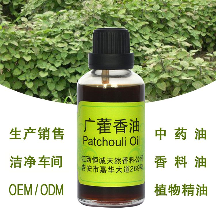由唇形科草本植物广藿香的干燥堆放三天并发酵后再经干燥的或微干的叶子经高压蒸汽蒸馏24h而得。新鲜的广霍香叶几乎无香气,只有在发酵和干燥后才产生精油。新造的广藿香油可能带有所谓的蒸馏味和草焦味,放置一段时间后有使好转,香气会更加醇厚。