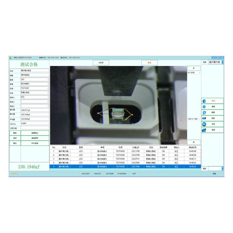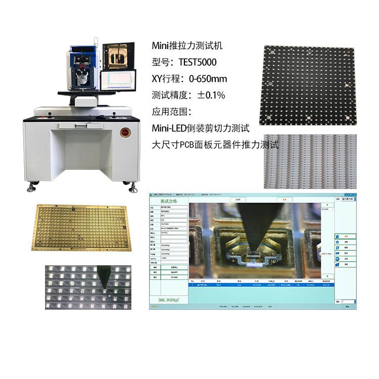 晶片倒装推力试验机 TEST5000大行程推拉力测试机 MiniLED倒装剪切力检测