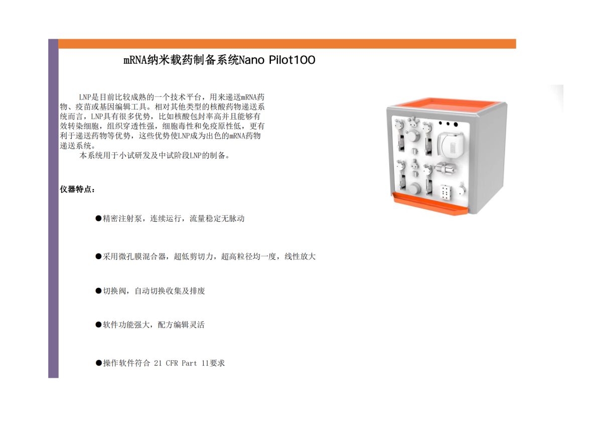 本系统用于小试研发及中试阶段LNP的制备。