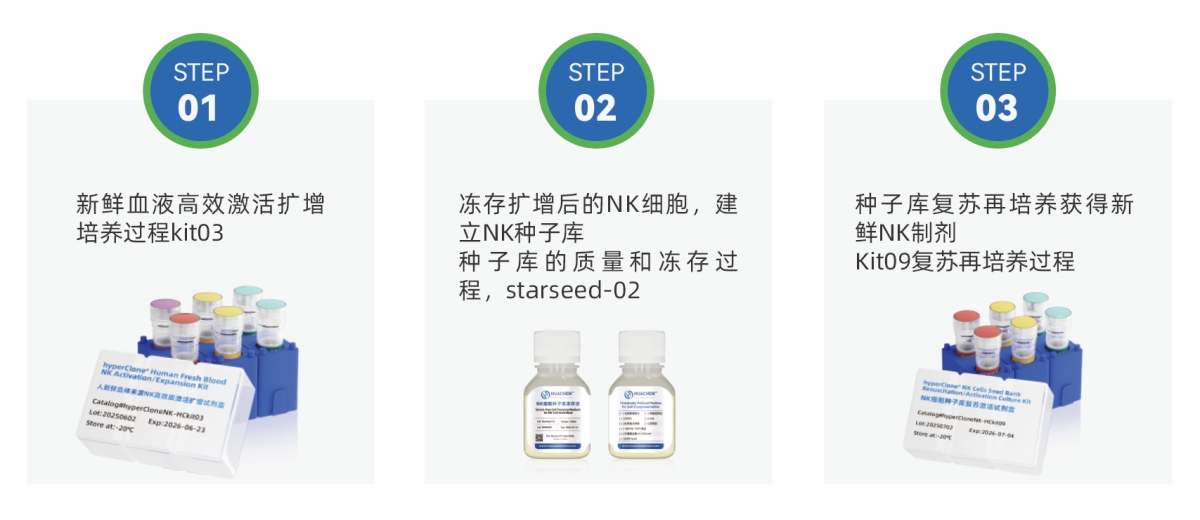 一次采血,多次回输:客户只需要一次采血,后续只需要从种子库中复苏种子细胞,再次进行培养扩增,即可获得新鲜NK制剂用于抗衰老或治疗。