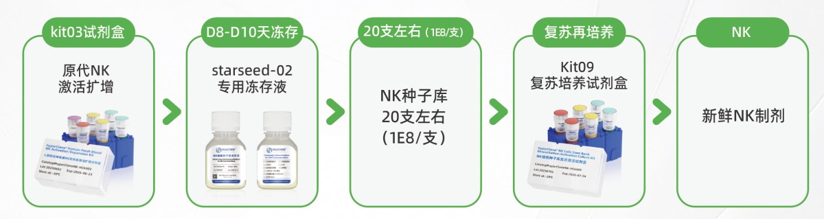 D8-D10天NK冻存:华辰生物推出NK细胞高效激活扩增培养建立种子库方案,结合专用种子库冻存液进行扩增后d8-d10天NK的冻存;