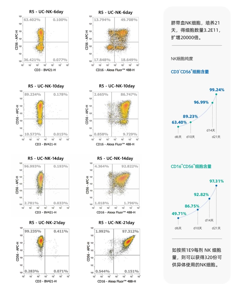 hyperClone NK kit可支持商密度长时间培养,支持获得大量高纯度高活性的异基因NK细胞现货制剂。