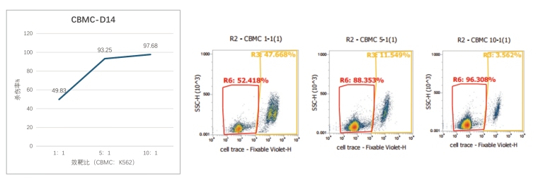 PBMC细胞培养14天后与K562共孵育4h肿瘤杀伤试验