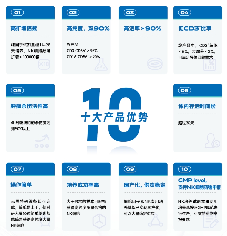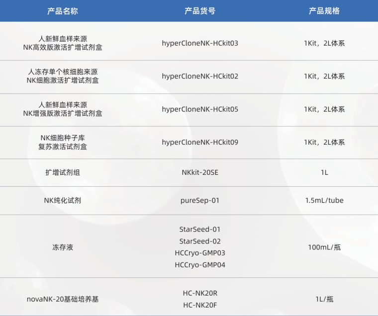 hyperClone NK细胞纯蛋白因子体外扩增试剂盒, 无需feeder cell,可高效高纯度扩增NK细胞, 满足自体或异体NK细胞应用, 化学成分明确, 符合GMP标准, 可以支持NK细胞药品申报。