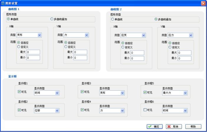 5.图形曲线尺度自动化(Auto Scale),可使图形以较佳尺度显示。并可于测试中实时图形动态切换。具有荷重-位移、荷重-时间、位移-时间、应力-应变荷重-2点延伸图,以及多曲线对比。