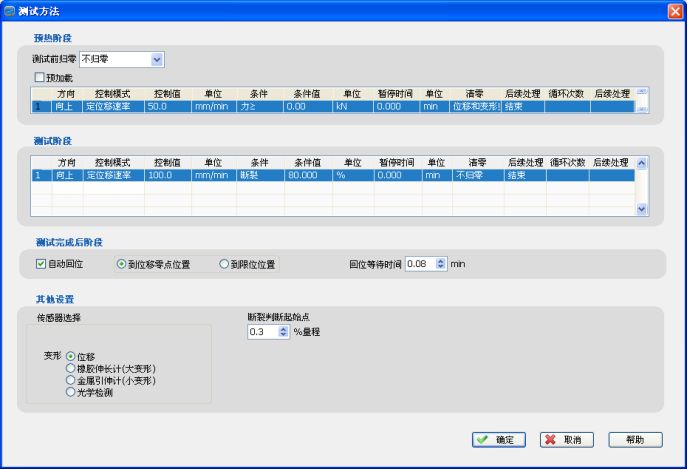 G. 测试结束可自动存档、手动存档,测试完毕自动求算最大力量、上、下屈服强度、环法、逐步逼近法、非比例延伸强度、抗拉强度、抗压强度、任意点定伸长强度、定负荷延伸、弹性模量、延伸率、剥离区间最大值、最小值、平均值净能量、总能量、弯曲模量、断点位移x%荷重、断点荷重X%位移、等等。备份:测试数据可保存在任意硬盘分区。。