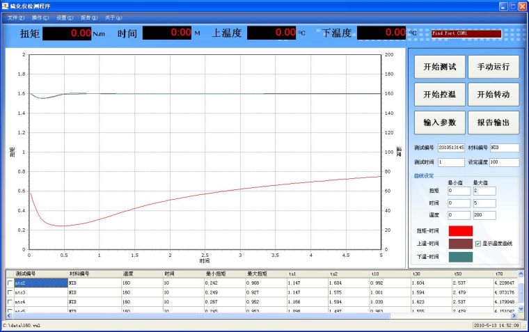 在计算机上设定好参数后直接控制硫化仪的试验参数。时实显示硫化曲线和温度曲线,存储试验结果可调出不同的试验结果对比并以不同的颜色显示。