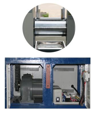 ⑴核心技术来自台湾,主电子元器件采用法国施耐德;⑵)加热式的,表面温度可达到300度,同时温度均匀;⑶辊筒采用钒钛合金冷硬铸铁,辊成硬度(HRC)50-60,表面坚硬耐磨,耐用. 辊筒内腔精加工确保辊体降温快速且均匀;⑷机器采用手动调距,数字式显示,调节方便直观,0.1~10mm厚度调控精准,操作方便,安全系数高;⑸机器设有紧急制动,当发生紧急事故时,共有7处安全控制开关,四角有紧急开关,后腿部,前顶部拉杆,后顶部拉杆,方便多位制刹车,方便机器快速停止;⑹ 如有任何异常时,安下任一开关按健,两滚筒可以自动反转1/4圈,提高安全系数;⑺自动加油装置是确保对传动部件长期供油的优点,弥补了人工加油忘记补给带来对部件损坏的严重后果我们采用的是两电机驱动,可实现前后滚筒任意速比,可前后方均可方便操作;(9) 整体底板,安装方便,传动方式为单轴输出确保扭力大,进口轴承减少磨蹭力确保省电与低噪音及胶料厚度(10) 均匀平行可控;(10)整机设定机械强度大,传动装置采用双电机双变频器控制,噪声低、使用寿命长;主要测试参数: