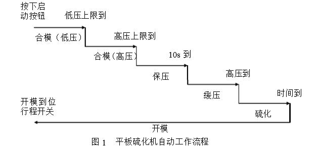 3)自动工作流程如图例示。电磁阀,其余就是硫化计时、动作指示和报警等。