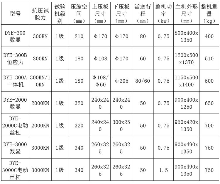 DYE-300 型电液式压力试验机可以满足关于对砖、砼、水泥等材料的标准试验要求,手动加荷、数字显示加荷力值与加荷速度值。