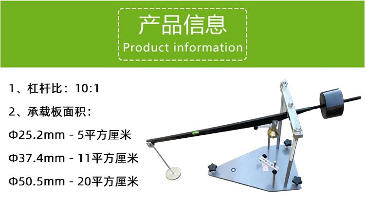 B、将带试筒的式样倒置在仪器的地板上,安放直径约为试筒四分之一的承载板:调平杠杆,使砝码的一端略翘上,并安置百分表