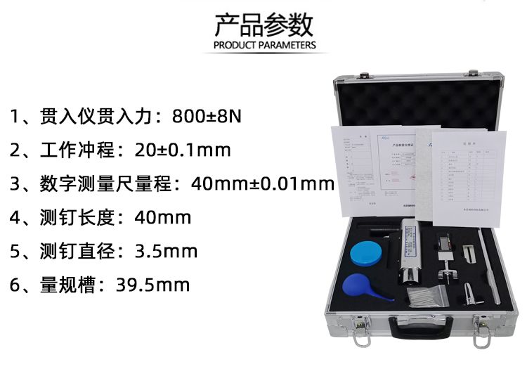 3、数显贯入深度表应轻拿轻放,注意保护测头,以防摔落。