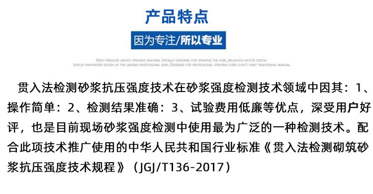 1、贯入式砂浆强度检测仪在挂钩状态时不应保持较长时间同,应尽快释放工作弹簧。