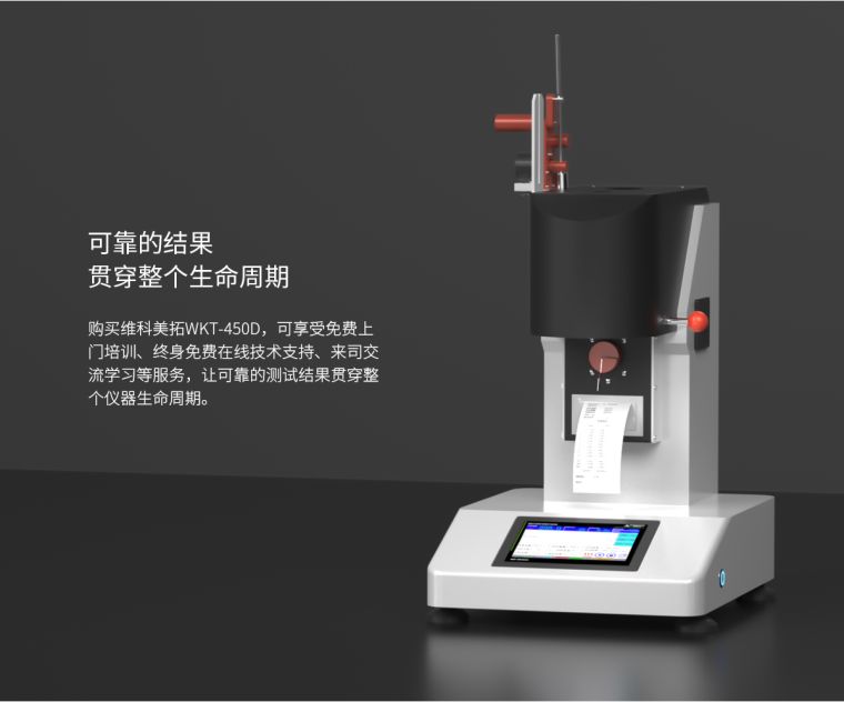 维科美拓WKT-450D电动加载熔融指数仪为高精度全自动熔体流动速率仪测定仪,用于测定各种塑胶、树脂在粘流状态时通过一定的温度和负荷,熔体每10分钟通过标准口模的质量或体积,用熔体流动速率MFR值。该仪器选定固定的砝码后,**放入仪器后由电机自动加载和取出砝码,无需人员频繁搬下砝码,并且可以与计算机互联,在计算机上操作和保存数据,并出具报告。本仪器适用于GB/T3682.1-2018《热塑性塑料熔体质量流动速率和熔体体积流动速率的测定》,同时满足 ISO1133:1997的规定及ASTMD1238测试标准。
