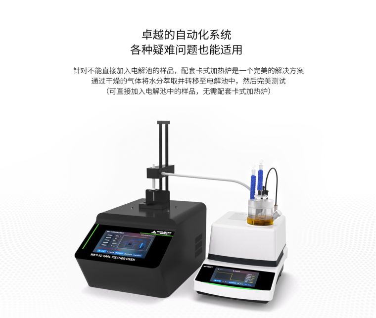 | 其他不溶性固体 | 不溶性固体、易污染和交叉污染样品(润滑油脂、醛酮类样品)、易与卡尔费休试剂发生反应的样品、水分释放缓慢的样品 |