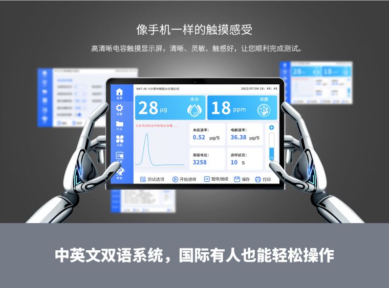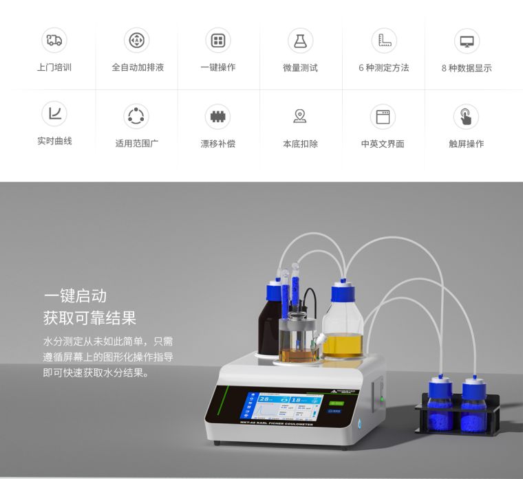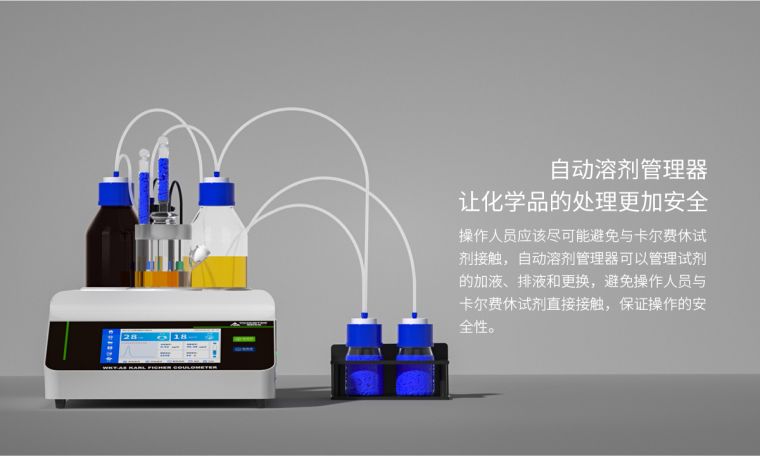 1.一键自动添加卡尔费休试剂,一键自动排出电解池废液,操作人员无需与试剂接触