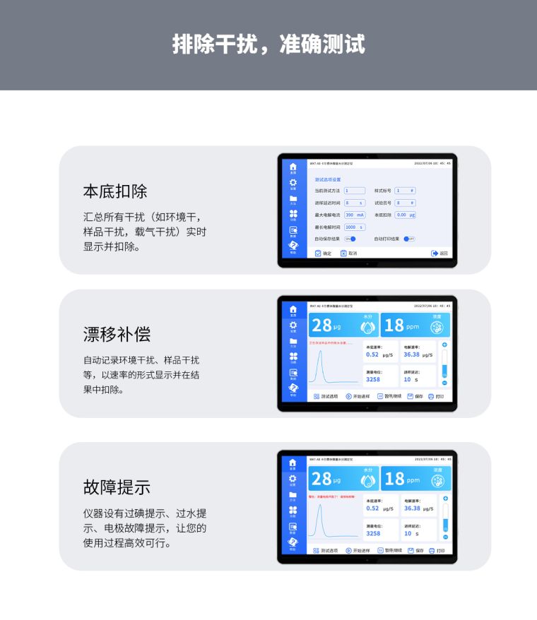 | 特殊功能 | 自动漂移补偿、环境及本底水分自动扣除、故障自检提示 |