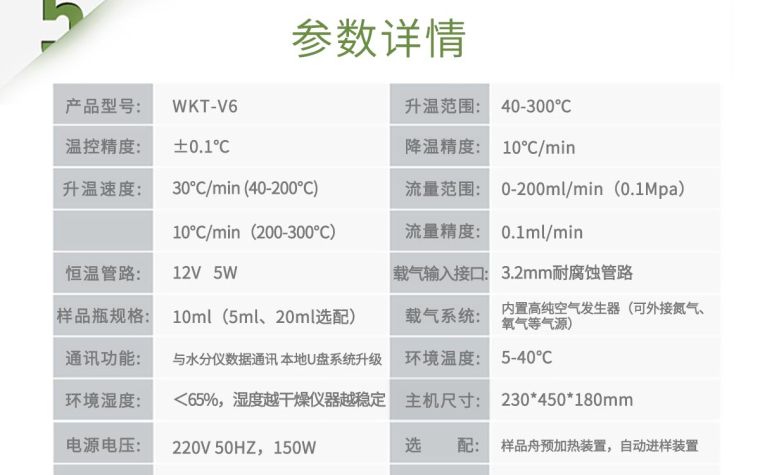 | 升温速率 | 30℃/min (40-200℃) 10℃/min(200-300℃) |