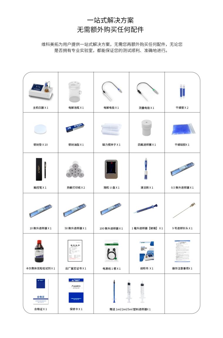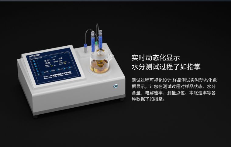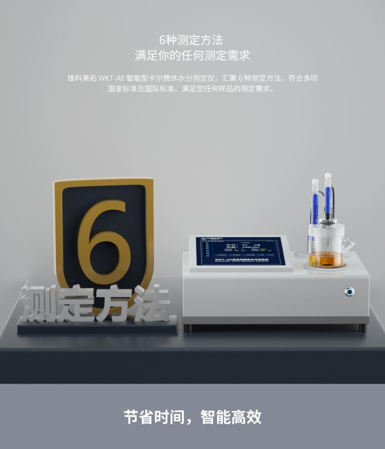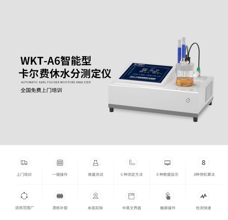 维科美拓WKT-A6全自动微量水分测定仪集成了多项的先进生产技术,测定原理为世界公认的测水经典方法【卡尔—费休库仑法】,测定范围低至0.0001%(1ppm),可在60秒内快速测定出液体、固体、气体中的水分含量,广泛应用在化工、石油、电力、科研、铁路等行业。在化工、石油、电力、科研、铁路等行业。