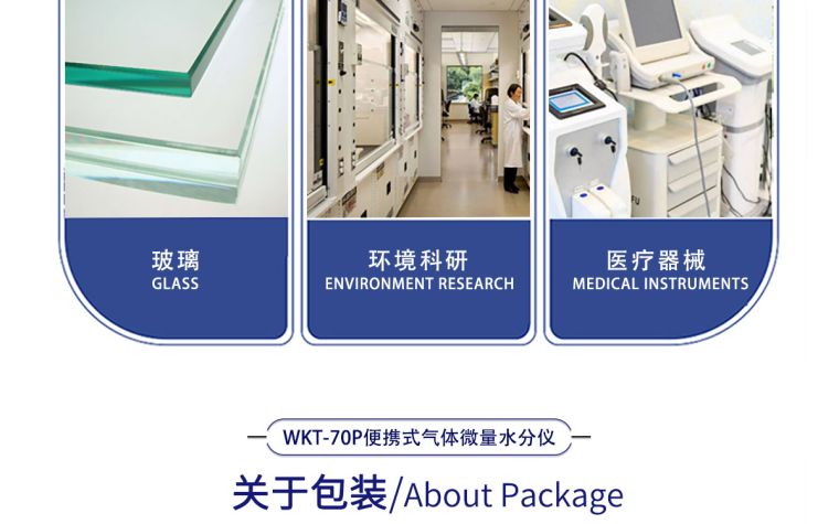 维科美拓牌WKT-70P便携式气体微量水分测定仪广泛应用于一切需要测量露点、水分的行业,只要是气体(氧气、二氧化碳、一氧化碳、SF6、氢气、氯气、甲烷)均可测量,特别适合种类酸碱气体的测量,在电力、冶金、造纸和纺织、科研、粮食仓储、玻璃、卫生检疫、环境科研、比对校准、医疗器械等领域得到了广泛的应用。特别适合各种酸碱气体的测量,氢气、SF6、二氧化碳、甲烷、一氧化碳、氧气不影响正常测试。