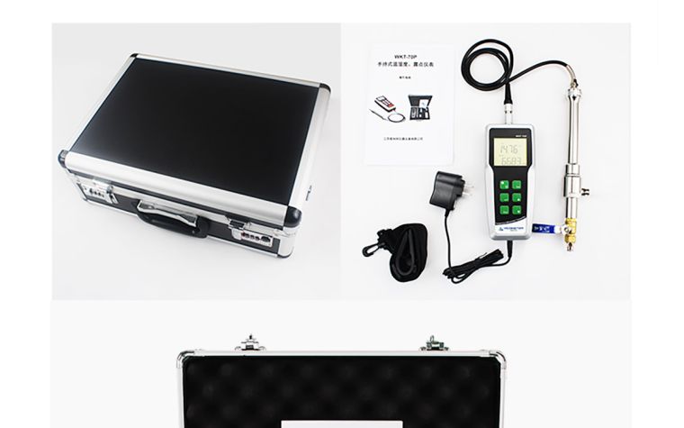 维科美拓WKT-70P便携式气体微量水分测定仪利用全新的数字处理技术,是新一代温湿度、露点、微量水分便携式测定仪器的经典。数字技术的先进性是显而易见的,数字信号处理和传输保证了产品高精度、可靠,传输线缆的信号衰减和干扰不会影响测量精度。校准数据存储在探头本身,因此,当测量环境变化需要更换探头时,仪表不必重新校准,只要更换不同类型的探头就能满足不同场合的应用,探头种类的多样性以及灵活的组合,必有一款能够满足您的需要。产品广泛用于电厂、冶金、科研、卫生检疫、粮食仓储、医疗器械、环境实验、比对校准、造纸和纺织等生产过程,特别适合种类酸碱气体的测量,对氢气、SF6、二氧化碳、甲烷、一氧化碳、氧气不影响。