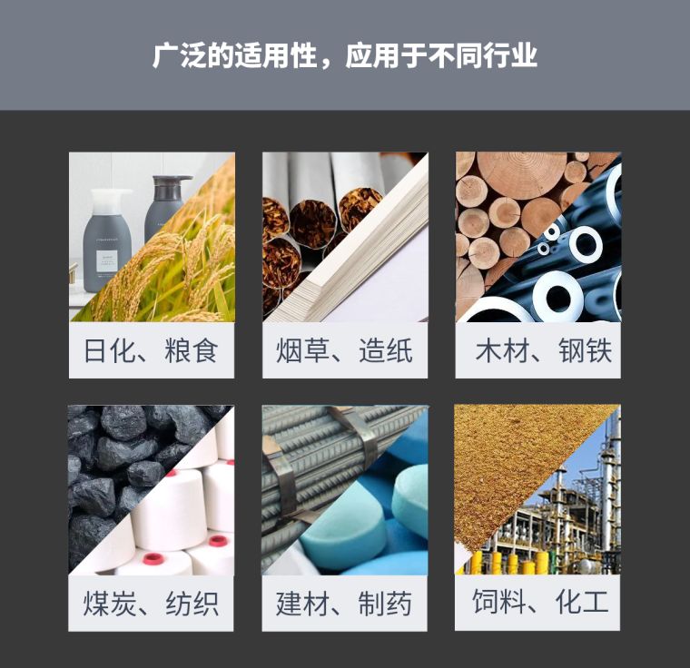 | 造纸行业 | 单张纸、纸板、纸浆、纸包、纸箱、废纸原料等 |