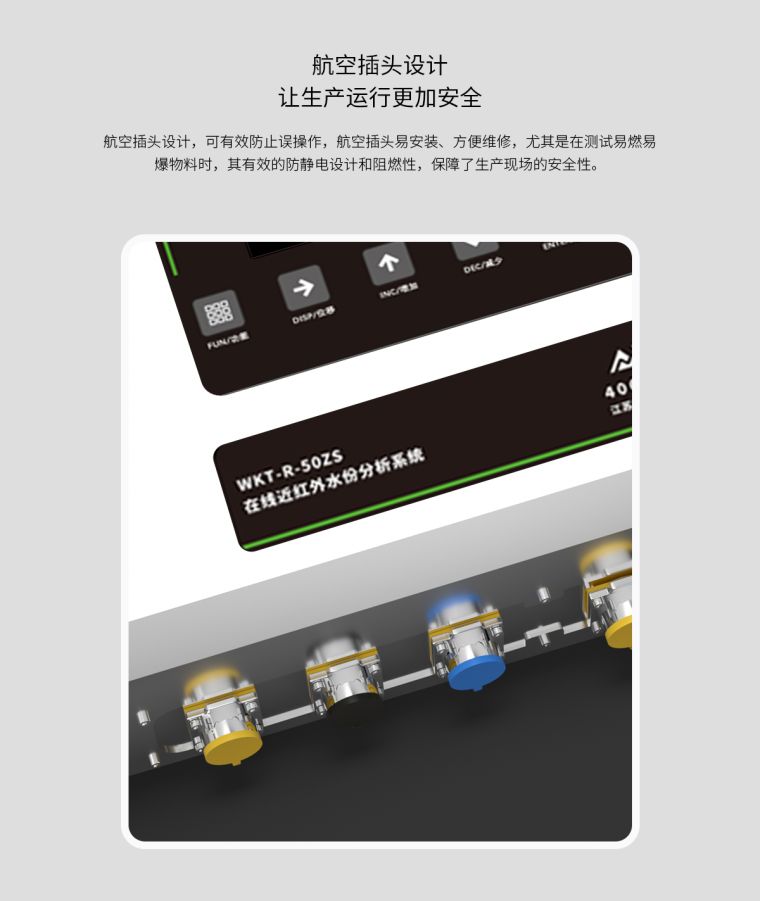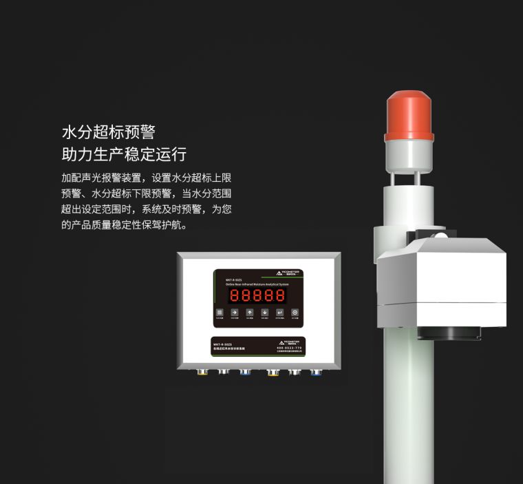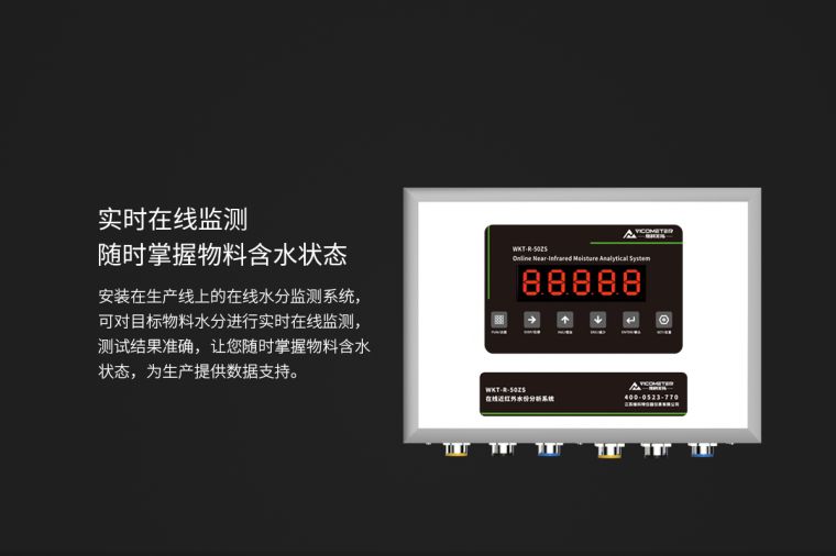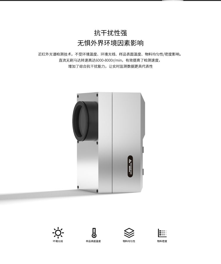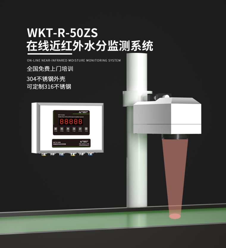 产品概述维科美拓WKT-R-50ZS-SS型不锈钢近红外在线水分测定仪用于一切需要快速测定水分的行业,可对化工原料、粮食谷物、木工木屑等原料进行在线检测。近红外光谱分析是指利用近红外光谱谱区包含的物质信息用于有机物质定性和定量分析的一种分析技术。仪器发出特定波长的光经过透镜、滤光盘、反射镜后将平行光反射到被测样品