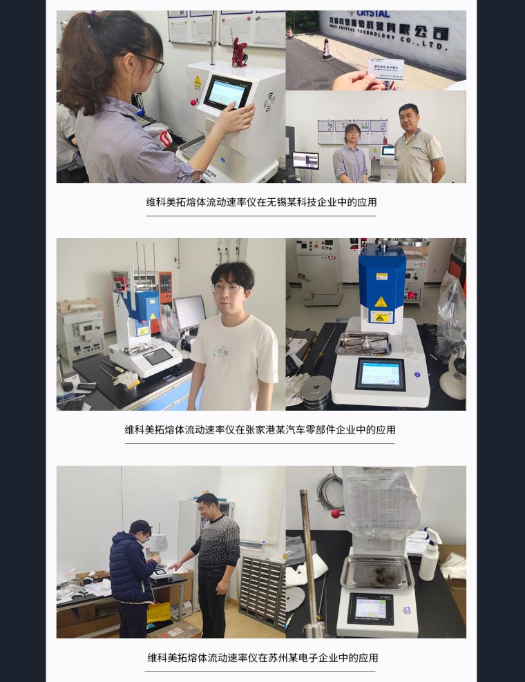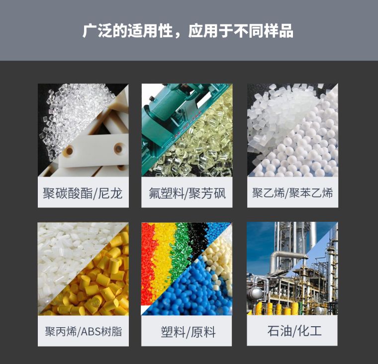 此仪器不仅适用于聚乙烯、聚丙烯、聚苯乙烯、ABS树脂等熔融温度较低的塑料测试,也适用于熔融温度较高的聚碳酸脂、氟塑料、尼龙等工程塑料的测试,因此被广泛用于塑料生产、塑料制品、石油化工等行业以及有关的大专院校、科研单位、商检部门。