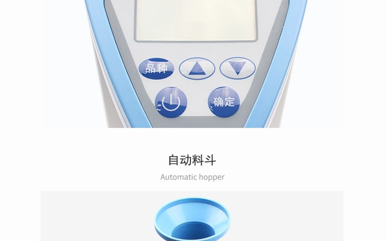 | 附属品 | 自动料斗、料斗基座、样品杯、刷子、定标砝码、电池1.5V(5#碱性电池)×4、使用说明书、产品合格证 |