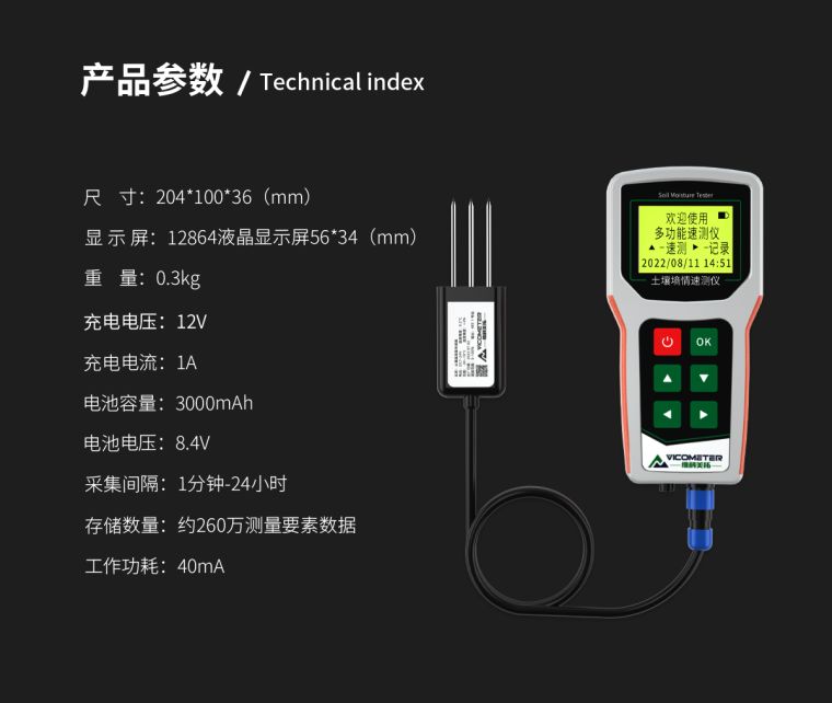 | 可接探头 | 土壤水分、土壤温度、土壤盐分、土壤PH值等(参数可拓展,可任意组合) |