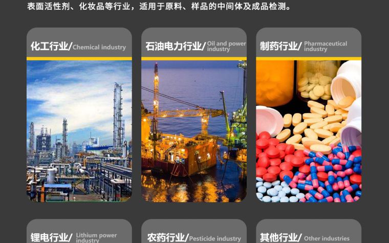 | 液体 | 化工行业:醇类、醚类、酸类、苯类、酚类、有机溶剂等适用于卡尔费休法测定的产品。 石油电力行业:绝缘油、变压器油等油品。 制药行业:药原料等。 农药行业:乳化剂等。 其他行业:锂电池电解液等。 |