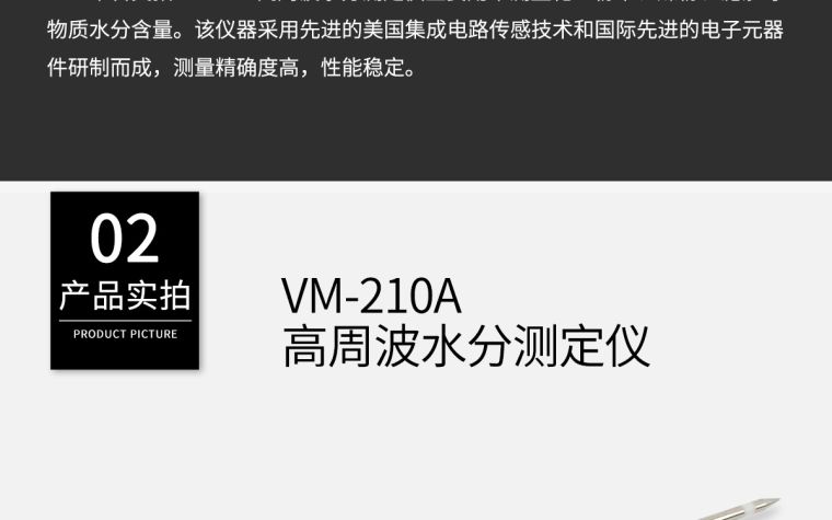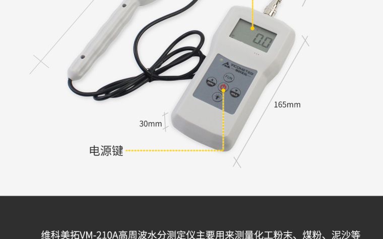VM-210A高周波水分测定仪主要用来测量化工粉末、煤粉、泥沙等物质含水率。该仪器采用先进的美国集成电路传感器和国际**的电子元器件研制而成,测量精度高,性能稳定。
