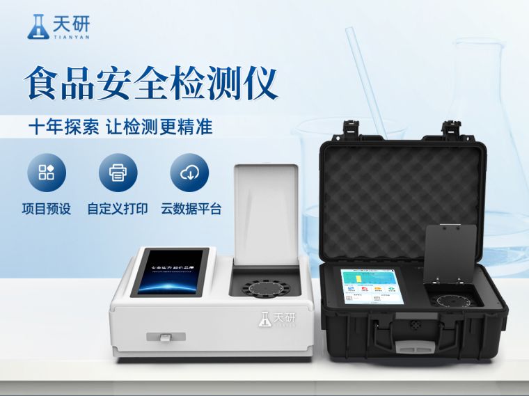 我司生产的高智能食品安全检测仪为集成化食品安全快速检测分析设备,采用台式一体化设计,可快速检测200多种食品安全项目,包含非食用化学物质、滥用食品添加剂、农药残留、兽药残留、重金属、病害肉、营养强化剂、抗生素类残留、激素类残留、真菌毒素类残留、化学类残留等项目的定性定量检测。目前广泛应用于市场监管局、检测中心、卫生监督部门、农业部门、院校及各单位食堂、食品肉产品深加工企业、商超市场、司法部门、餐饮机构、养殖场、屠宰场、检验检疫部门等单位。