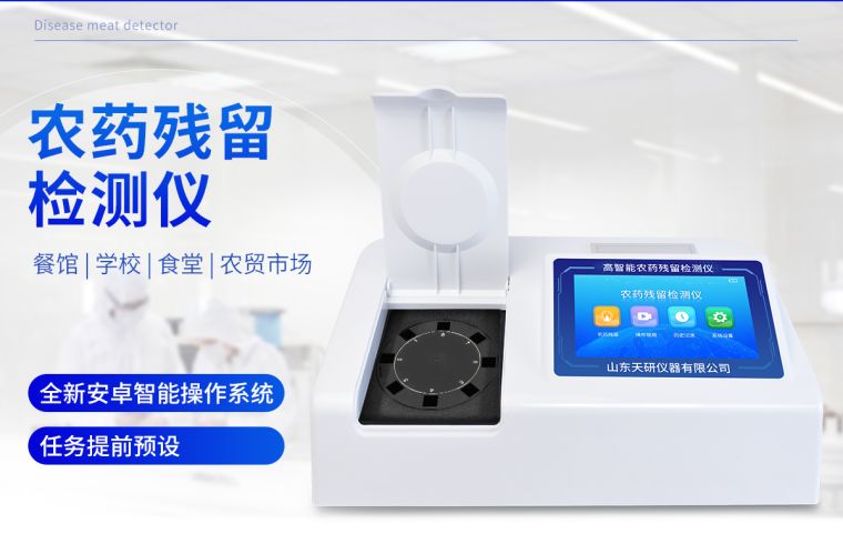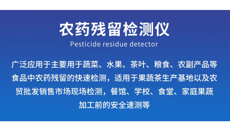 我司生产的农药残留检测仪广泛应用于主要用于蔬菜、水果、茶叶、粮食、农副产品等食品中农药残留的快速检测,依据国标GB/T5009.199-2003进行检测,适用于果蔬茶生产基地以及农贸批发销售市场现场检测,餐馆、学校、食堂、家庭果蔬加工前的安全速测等。