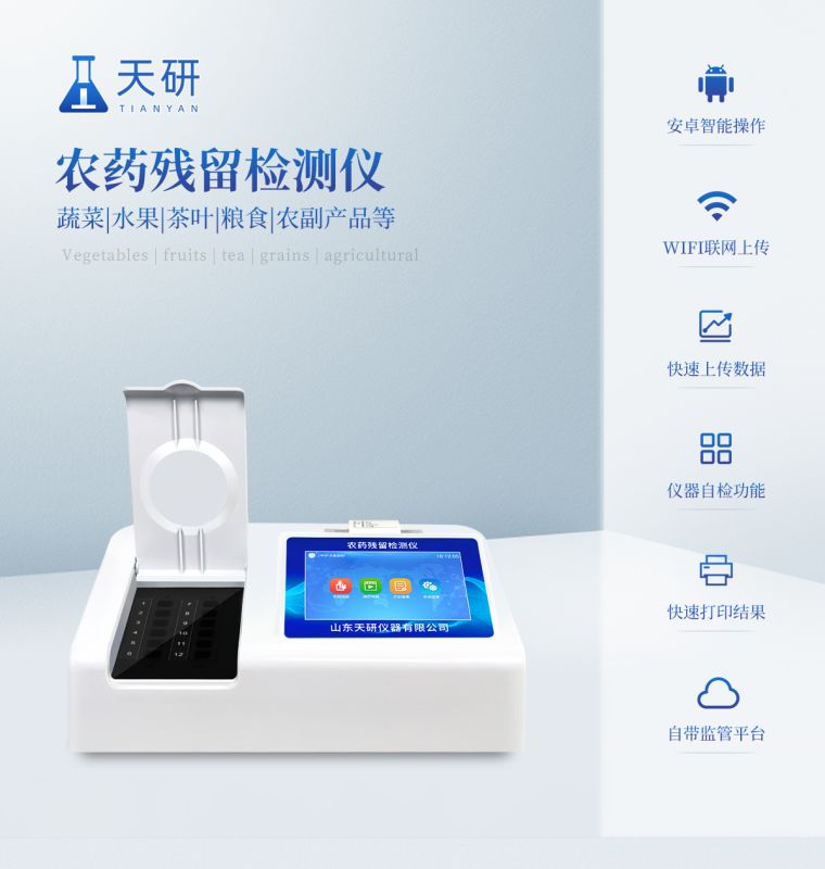 广泛应用于主要用于蔬菜、水果、茶叶、粮食、农副产品等食品中有机磷和氨基甲酸酯类农药残留的快速检测;此外还可用于果蔬茶生产基地和农贸批发销售市场现场检测,餐馆、学校、食堂、家庭果蔬加工前的安全速测等。