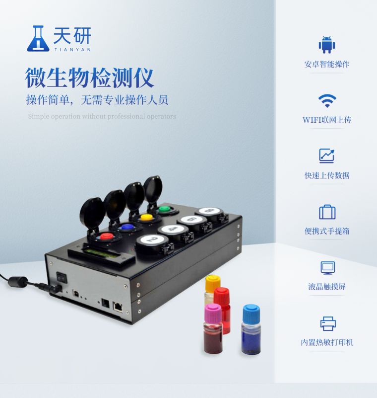 微生物检测仪集合培养皿法、酶法(β-葡萄糖苷酸酶分析)、免疫法(抗原搜寻)及基因法(基因搜寻)等技术的优点于一身,检测速度较国标法短