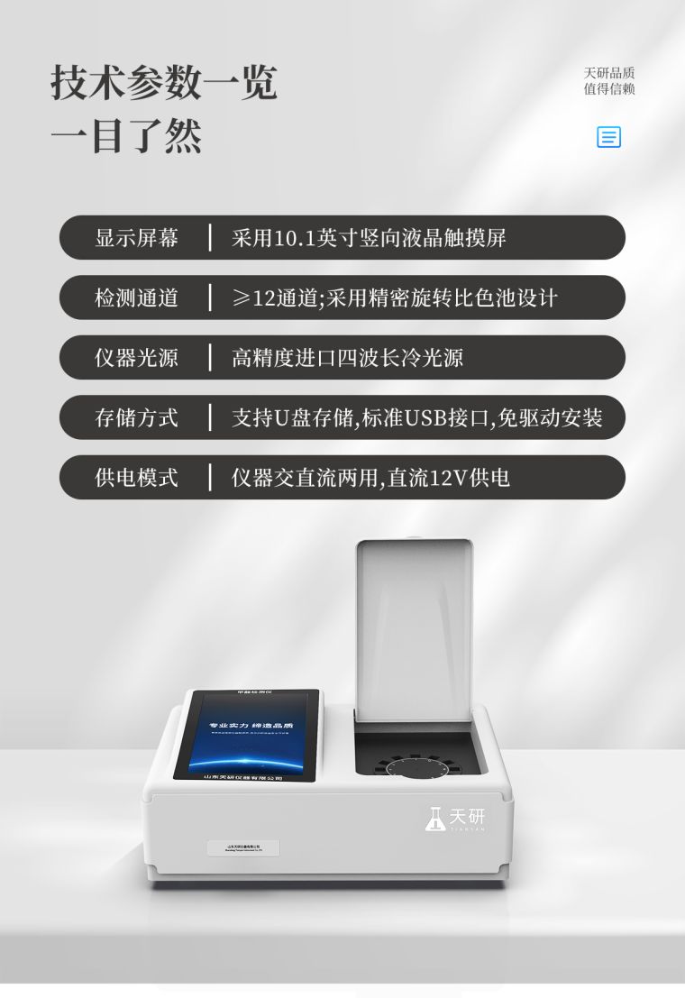 ★检测通道:≥12通道;采用精密旋转比色池设计,使用同芯片同光源校准精度,解决不同光源之间的误差值。1-12通道间误差0.1%。(专利号:ZL202022821055.2)
