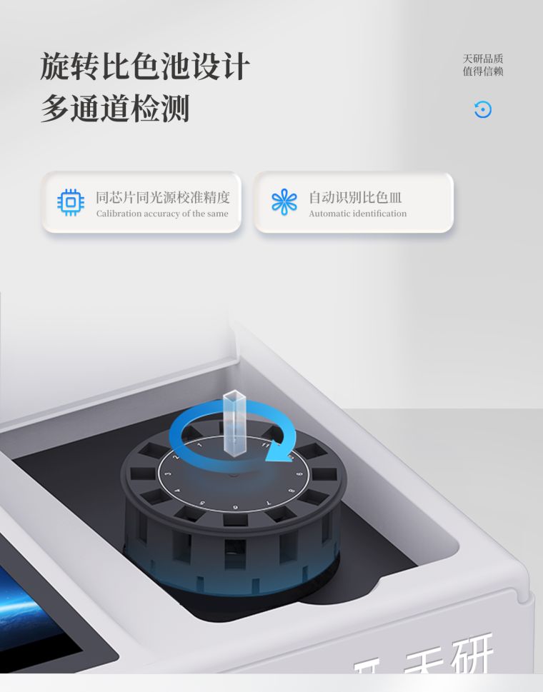 检测通道:≥12通道;采用精密旋转比色池设计,使用同芯片同光源校准精度,解决不同光源之间的误差值,更加准确高效。(1-12通道间误差0.1%,专利号:ZL202022821055.2)
